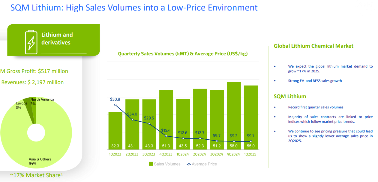 Overall SQM achieved in 1Q25 $125m Gross Profit on Lithium. On 55Kt. That’s $2,272 profit per Tonne. That implies $9,400/tonne revenue and $7,127 of cash cost for Lithium Carbonate.