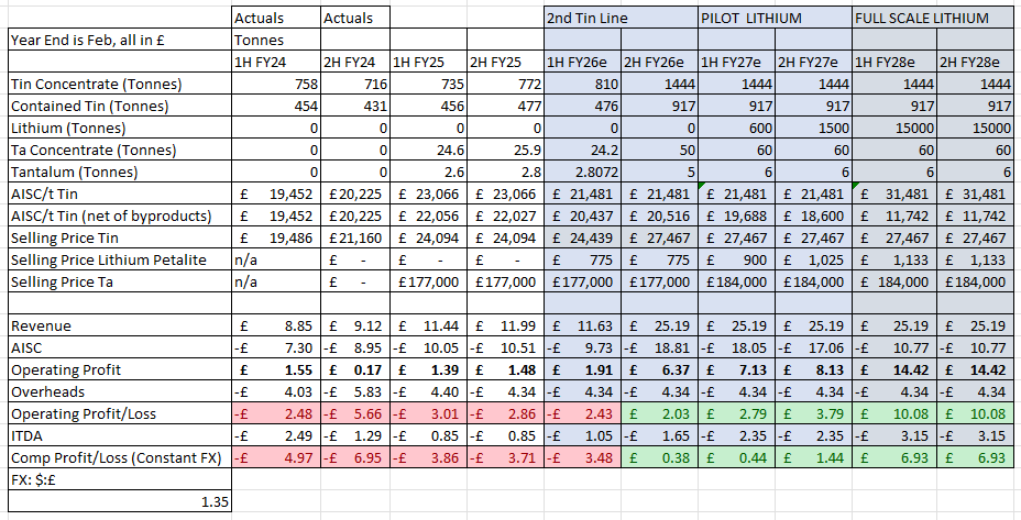 My model is much more modest and nearer term. It’s based on an extrapolation of known facts. I’m working on a doubling of tin, and a bit more than a doubling of Tantalum plus a 30Ktpa Lithium operation at Lithium Ridge. A 2X of today’s 2.75p to get to 5.5p a share seems reasonable over 12-24 months - if things work out - and assuming that ATM can increase production, reduce costs, see higher tin prices, higher lithium prices and that SQM proceeds with Lithium ridge.