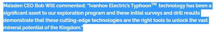Fascinating OB. Just imagine, what if Typhoon was deployed deep underground within an existing mine, what sulphite signatures it might reveal and the future direction for existing older mines and their deposits?