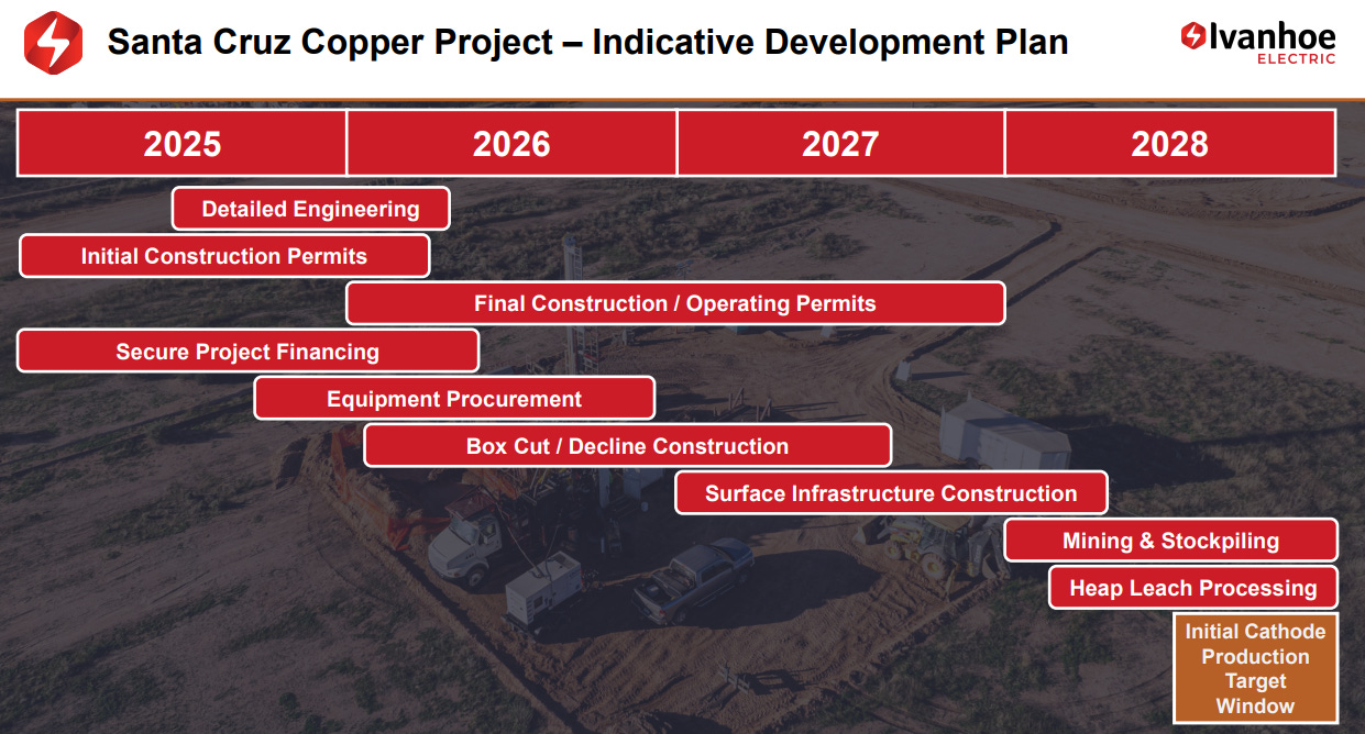Recent milestones include a June 2025 Preliminary Feasibility Study (PFS) for Santa Cruz outlining a 15-year mine life with average annual production of ~72 Kt per year of copper at low costs (~$1.36/lb after credits), and securing over 3,000 acres of private land for infrastructure.