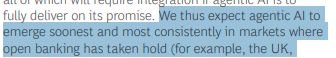While the UK can be seen as a negative, it is one of the few places that has embraced open banking, and therefore there is an opportunity for UK challenger banks to lead the world in agentic AI. And of course AUGM is not solely focused on the UK either.