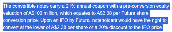 A$4.7 million convertible loan valued at £2.7 million