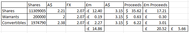 The deal - if it concludes - equates to a 5% increase to NAV and a 10% increase to the market cap since the deal would generate £20.5m cash and the gain would be £5.66m, based on today’s A$2.07=£1 rate.