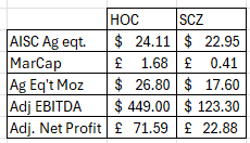 HOC has delivered a number of let downs to investors of late. The Oak Bloke called time on HOC in “cooking up the HOC” at 217p, but HOC is up 40% since then. Did I miss out? How does SCZ compare? Fairly favourably actually. At a quarter of the market cap, SCZ is about 20% more profitable than HOC, and produces at a cheaper cost per Ag Ounce Equivalent, and has reserves nearly equal to those of HOC.