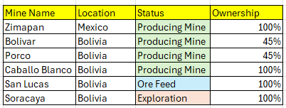 SCZ has four producing mines as well as an ore feed agreement, plus an exploration asset called Soracaya.