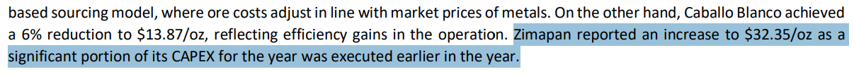 The average AISC was $22.74 per ounce. You’ll notice that Zimapan stands out as a peculiarly more expensive mine. Much of this is just a timing issue, and the investments being made to drive operational efficiency are paying off in the numbers despite some past inflationary cost pressures. Some mines are half of their AISC from 12 months ago.