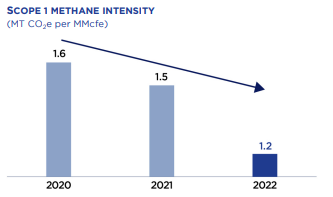 DEC has a target reduction of 50% methane intensity by 2030 (50% of 2020 emissions) - it has already reached halfway to its target last year (in 2022). 0.4 MT Co2e per MMcfe more to go. And the 1.2 includes the Tanos acquisition without which 1.2 would be 1.1…. so in fact it would be more than halfway. Also when it acquires assets it then improves them.