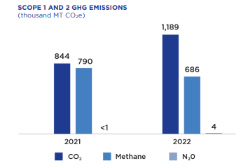 “some of our SAM reduction programmes have not yet been fully recognised and as a result cannot yet be taken into account. For example, in 2022, we eliminated pneumatic devices on 55 well pads, including on 40 such pads in the Central Region. Since we installed alternative compressed air devices at various times throughout the year, we are only able to report a portion of the associated reductions (~9,000 MT CO2e) in 2022 given this conversion timing. In 2023, we will benefit from a full year of accounting for these reductions which we currently estimate at 40,000 MT CO2e.”