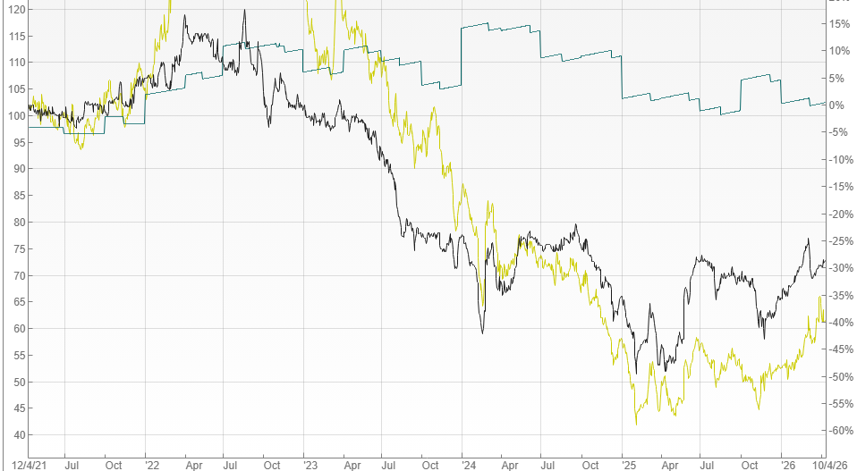 The fund is paying a 5.8p per year dividend, which at a 73p buy is a 7.9% yield.