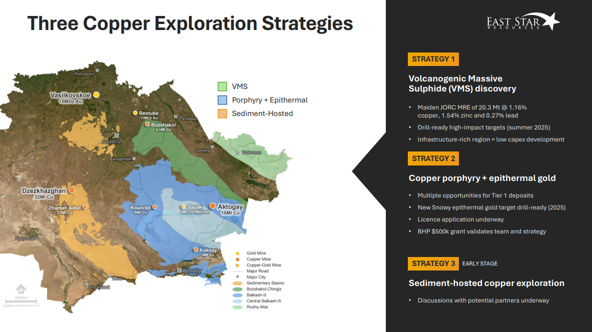East Star's management are based permanently in Kazakhstan, supported by local expertise. The Company is pursuing three exploration strategies: