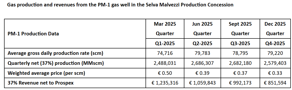 This producing gas asset is 37% owned by PXEN and generated €4m revenue net to PXEN in 2025 and €2.6m of after tax cash flows.