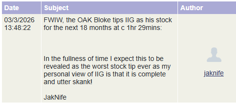 And FWIW the JakNife claims IIG to be the “worst stock tip ever” - but only in the fullness of time.