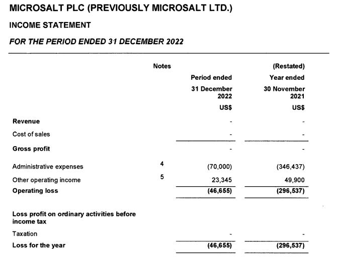 Digging further I found the “$2.5m” - the loss is not a loss - it’s a loan from TEK to Microsalt. So Microsalt made a much smaller loss than has been reported.