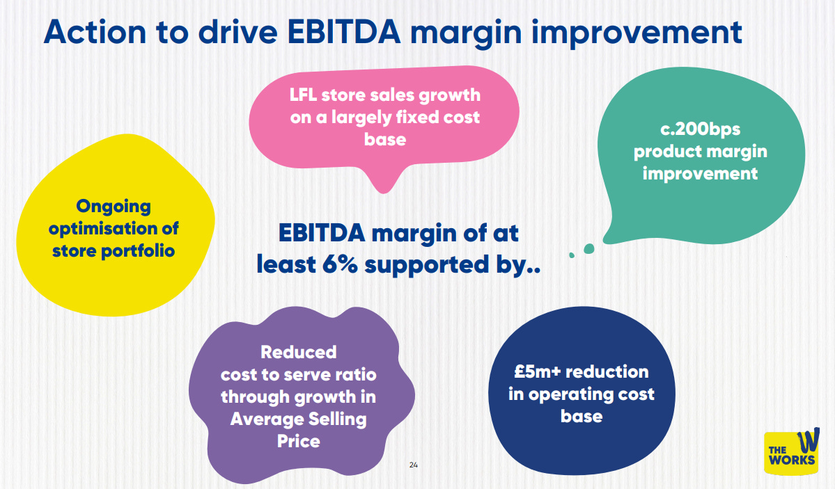 WRKS plans to drive further improvement too through a series of actions around margin, sales, price rises, operating costs and further store changes.
