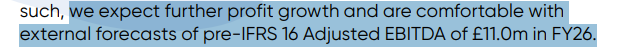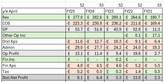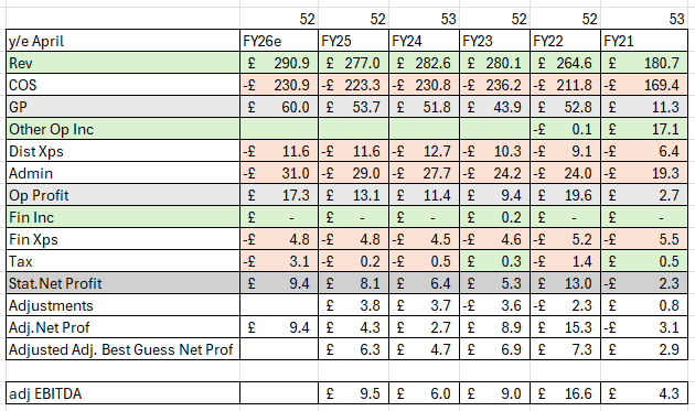 Eagle-eyed readers might have spotted my £5m net profit estimate and harrumphed that’s a CUT to net profit. A cut from £8.1m in FY25.