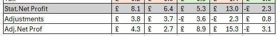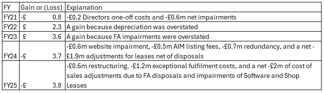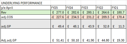 The problem is that many of these adjustments actually belong to previous years I believe. The Cost of Sale in FY22 and FY23 were very likely overstated by around £2m judging by the reversals in FY24 and FY25.