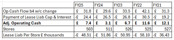 We see per store lease liability payments reduce to £48.5k per store average so we see evidence of reduced costs going forwards.
