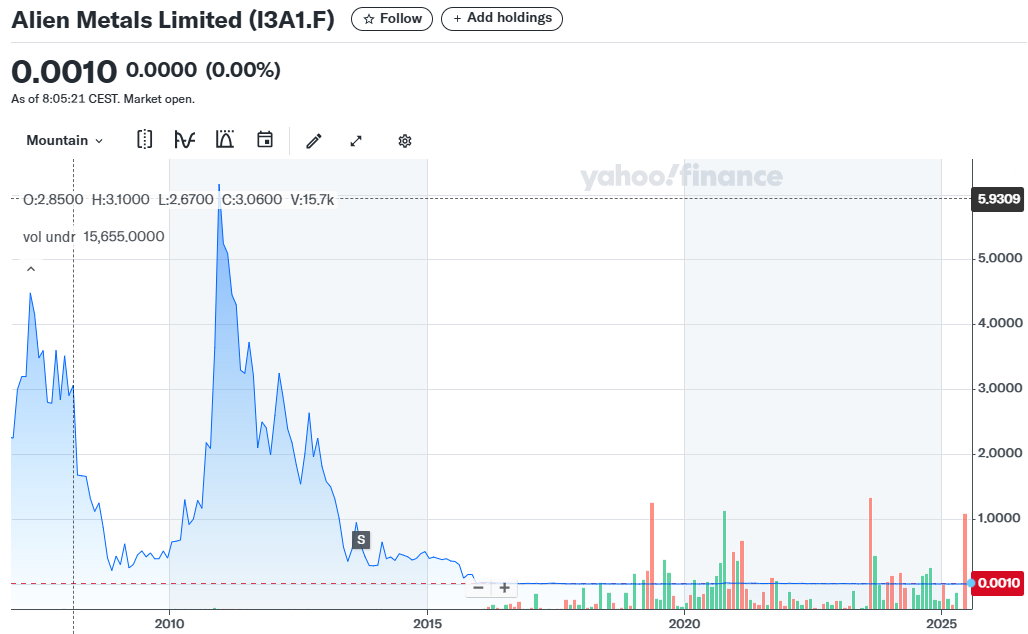 With money creeping back into nano caps, after they spent numerous years in outer space and with Silver and PGM prices rising spectacularly in 2025 Alien Metals ticker UFO would appear to be worth an evaluation.