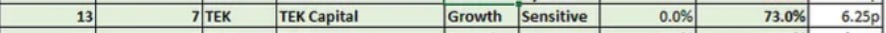For the record there were six spikes to 10p-16p and six dips to 6-7p where I top sliced and topped up so this has been a reasonably profitable holding for me. But do I wish to include it in the OB24 ideas still? No, it’s time to TEK my leave.