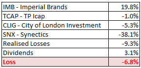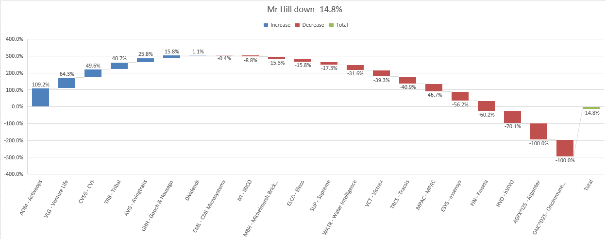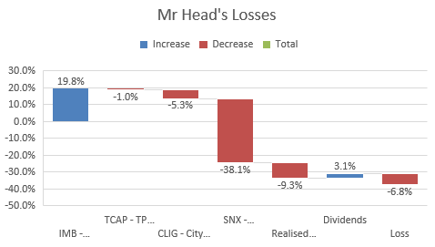 Mr Head called time on many of his ideas throughout the year and looking at them some were wise to drop. Like Hilton Foods down -45%. While others like Coats have increased since being dropped.