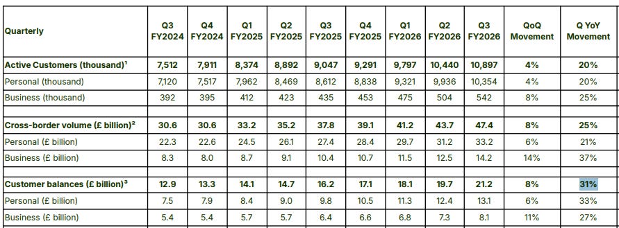 Wise: Processes approximately £150 billion ($200 billion) per year. That’s $0.0002 quadrillion. How’s that for a runway for growth?