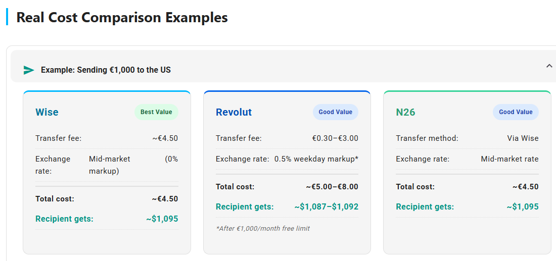 N26 (Europe): Fully integrated Wise into its app so users can send money in 30+ currencies without a separate Wise account.