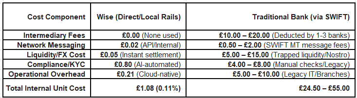 Legacy providers (Banks) have costs 20X-50X that of Wise. That’s COSTS. Not any gross profit, let alone net profit (which Banks want to make).
