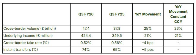 WISE is an £8.6bn marcap, down -19% since 01/01/2025 even though it continues to grow users, volumes, and continues to extend its presence into new countries such as South Africa, Philippines, Japan and India.